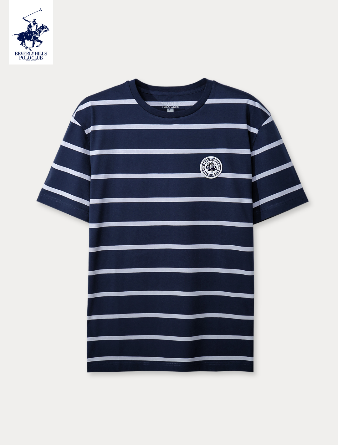 เสื้อยืดคอกลมแขนสั้นลายริ้ว